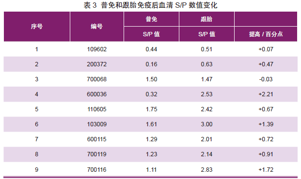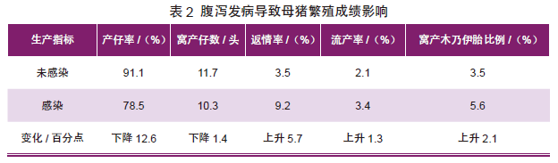 临床经验及实验室数据表明:腹泻发病引发母猪繁殖障碍问题,降低母猪繁殖成绩,母猪非生产天数延长,发情延迟,产仔数降低等问题,对初产母猪影响比经产母猪严重,如表2。 三、防控措施 1)加强隔离与消毒,减少环境带毒。 严格控制种猪引进操作流程,引种前实验室检测评估,防止引进带毒猪导致疾病的发生。定期消毒,严格控制人员、物资、饲料进场消毒流程,做到“全进全出”管理。 2)做好猪群疫苗免疫接种。 目前有猪传染性胃肠炎、猪流行性腹泻、猪轮状病毒感染三联弱毒活疫苗,和猪传染性胃肠炎、猪流行性腹泻灭活二联灭活疫苗,采取弱毒活疫苗加灭活疫苗交替免疫的方法,能有效降低母猪及仔猪的腹泻。通过试验验证,采取普免加产前跟胎的免疫方案,能够显著提高抗体水平,如表3、表4。 |