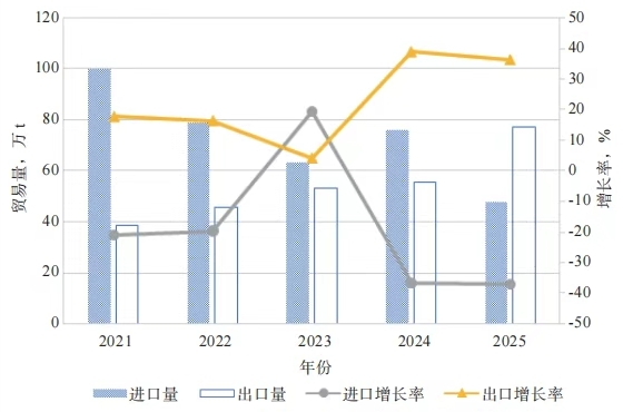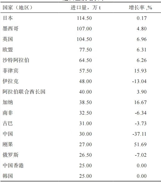 全球肉鸡进口需求增长中新兴市场成为重要引擎。日本、墨西哥和英国是肉鸡产品进口量超过 100 万t 的全球三大进口国,其中,日本进口量 114.50 万t,与2024 年基本持平;墨西哥和英国均实现了较大幅度增长,进口量分别达到 107.00 万t 和 104.50 万t,增幅分别为 4.80% 和 6.96%。新兴市场成为肉鸡产品进口增长的核心驱动力(表 2),其中,刚果实现了增幅超过 50% 的超大幅度增长,菲律宾和加纳增幅分别高达15.93% 和16.67%,欧盟、沙特阿拉伯和阿拉伯联合酋长国也分别实现了 6.31%、6.26%、3.90% 的大幅度增长。 在主要进口国(地区)中,鸡肉产品进口量出现较大降幅的是中国和伊拉克。其中,中国受国内产量充足以及巴西进口暂停等影响,2025 年下半年肉鸡产品进口大幅下跌,全年来看,2025 年中国肉鸡产品进口量降至30.00 万t,较 2024 年的 47.70 万t 减少 17.70 万t,降幅达 37.11%。值得关注的是,2024—2025 年,中国肉鸡产品贸易连续 2 年实现出口增幅超过 35%、进口降幅超过 35% 的双向变动,受此驱动,2025 年中国肉鸡产品净出口量达到 75.00 万t(图 6)。此外,伊拉克为了保护本土家禽产业,2025 年 9 月颁布禁止进口冷冻整鸡、鸡块及鸡肉制品的政策(2025 年 10 月生效),导致进口显著收缩,全年进口量下降 13.04%。 |