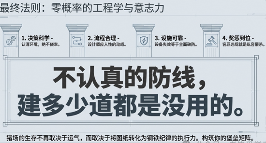 物理隔离、化学及高温消毒、行为及动线管控是生物安全的三个齿轮。 硬件决定下限,管理决定上限。 只有三齿轮咬合运转,感染概率才能无限趋近于零。