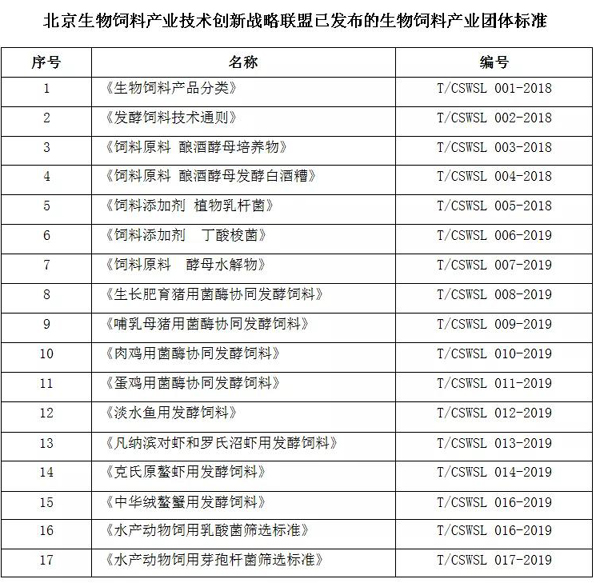 根据中华人民共和国国家标准2019年第15号公告,2019年12月17日国家市场监督管理总局(国家标准化管理委员会)批准发布十项饲料添加剂国家标准,具体标准如下: 自2018年1月1日起施行的《中华人民共和国标准化法》首次明确了团体标准的法律地位,对未来行业自主开展团体标准工作提供了重要支撑。同时对强制性标准的范围进行了明确: 只允许制定强制性国家标准,取消了一直以来存在的强制性行业标准和强制性地方标准。要求强制性标准文本应当免费向社会公开。2019年1月9日国家标准化委员会、农业部制定并发布的《团体标准管理规定》中对团体标准进行了明确的定义,“团体标准是依法成立的社会团体为满足市场和创新需要,协调相关市场主体共同制定的标准。” 截止2019年底,国内已有2840家社会团体在全国团体标准信息平台注册,覆盖全国30个省、市、自治区,共发布11285项团体标准,其中农林牧渔相关领域共发布1345项。生物饲料开发国家工程研究中心委托北京生物饲料产业技术创新战略联盟,联合联盟会员单位起草、制定、发布17项生物饲料产业团体标准,涉及生物饲料产品分类、发酵饲料技术通则、植物乳杆菌、丁酸梭菌、酵母培养物、畜禽用发酵饲料、水产用发酵饲料等,详见下表: 团体标准源于市场需求,具有天然的市场属性和自下而上的特性,成为众多标准化改革措施中易启动、易参与、显成效、最根本、最具活力的抓手,是支撑产业创新驱动、促进产业标准化发展、提升产业标准化治理的重要破局点。因此,培育和发展生物饲料团体标准,加快步伐推动团体标准的健康可持续发展。这是提升产业服务竞争力,激发市场活力,推进产业经济提质增效升级的可靠保障。