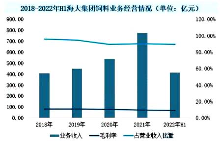 2018-2021年,海大集团饲料业务收入持续增加。2022年,随着下游养殖规模逐步扩大,及饲料单价上涨。2022年上半年,公司饲料业务收入413.32亿元,同比增长22.08%。从毛利率看,受豆粕等主要饲料原料价格上涨影响,海大集团饲料业务综合毛利率水平持续下降。2022年上半年,公司饲料业务毛利率为9.03%,较2021年下滑0.32个百分点,毛利率降幅收窄。 近年来,公司不断扩大饲料业务规模。2021年公司饲料销量1963万吨,约占全国总产量的6.69%%,全国饲料行业第二位。2022年以来,公司进一步加快国内外市场布局,加大与下游行业养殖公司的合作,在行业需求下行的情况下,取得逆势增长。2022年上半年,公司销售饲料974万吨,同比增长11%。 公司饲料产品主要包括水产饲料、禽饲料和猪饲料等,从对外销售数据看,2021年公司禽类饲料对外销量为944万吨,占对外总销量的50.45%;水产饲料对外销量467万吨,占比为24.96%;猪饲料对外销量460万吨,占比为24.59%。 公司的禽饲料销量最高,水产饲料对外销量略高于猪饲料。2022年上半年,公司对外销售915万吨,同比增长9%。其中,水产饲料增长17%,禽饲料外销量同比增长5%,猪饲料外销量增长8%。整体来看,禽类饲料销售规模最大,但受益于水产行业升级影响,水产饲料销量增速最快。 |