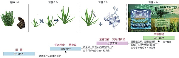 现阶段,我国进入口粮饲料并重新时期,饲草作为动物的“口粮”,是饲料的核心组成部分,其产业的发展对于保障国家大粮食安全具有深远的战略意义。文章分析了我国饲草种业的现状,综述了作物基础科学前沿成果及人工智能(AI)在智能育种的应用,剖析了饲草特化性状与育种关键问题,指出饲草智能育种有望加速饲草新品种的培育,带动产业发展。文章最后给出了助力饲草智能育种发展的建议,并希望引起政府相关部门和广大科技工作者对饲草育种与产业的关注。 随着我国草牧业的发展,饲草和饲草种子的需求日益增加,直接关乎乳肉供给和国家大粮食安全。为此,我国“十四五”期间,在重点研发计划、种业“卡脖子”攻关、农业种质资源专项、生物育种专项等有部分饲草育种布局;党的第二十届中央委员会将饲草饲料确定为基本农作物写入了第三次全体会议公报;2024年,《国务院办公厅关于践行大食物观构建多元化食物供给体系的意见》也明确提出“大力发展饲草产业,增加草食畜产品供给”。饲草种子是饲草产业的芯片,育种科技水平直接决定了一个国家种源保障、产业发展和世界饲草种子贸易能力。 一、全球饲草育种战略与科技水平概况 欧美发达国家长期重视饲草育种。在美国,饲草被誉为“绿色黄金产业”。美国农业部2013年启动《面向21世纪的苜蓿研究路线图》《国家奶牛牧草技术路线图》;2019年启动5年计划“天然草地,人工草地和农牧耦合系统”。欧盟自2014年启动“LIFE-VivaGrass计划”资助全欧草地畜牧业,2020年投入1000万欧元启动“SmartProteins水平线计划”系统开始饲草蛋白研究。澳大利亚在2018年启动“面向2030年农业创新研究计划”,侧重草—畜育种、环境监测。 美国是世界饲草种业大国和强国,我国则是世界饲草种子的进口大国。美国在20世纪50年代就将紫花苜蓿列入战略物资名录,草产业已成为美国农业中的重要支柱产业,年产值约110亿美元,仅次于玉米和大豆。《草种研究动态报告(2022)》显示,2021年,世界饲草种子贸易量为87万吨,主要以黑麦草、羊茅、紫花苜蓿、三叶草和早熟禾等种子为主。美国2021年饲草种子出口量世界第一,市场份额达到27%。全球进口饲草种子的国家主要有荷兰、德国、中国、法国、意大利、加拿大、土耳其、比利时、英国、巴基斯坦、美国等。我国2021年饲草种子进口份额为8%,位居全球第3。可见,我国是世界饲草种子的进口大国。 相对于粮食作物,饲草虽然也有着万年的驯化历史,但其育种水平落后。作物育种技术随着生命科学基础理论的发展经历了4个不同的阶段(图1),而饲草育种还处在人工表型选育等早期阶段,依赖“老把式”经验育种。全球饲草育种水平有着如下特征。①基于表型选择的常规育种为饲草育种的主要路径。选择育种、诱变育种、杂交育种是目前育成品种的主要技术手段,广泛应用于新种质新品种(品系)的创制,优异生产性状(草产量、品质)和区域适应性(耐逆、抗病等)的育种材料主要通过人工田间观察和表型筛选获得。②注重饲草种质资源的收集保存与发掘利用。各国将饲草视为国家战略生物资源,开展了种质资源库建设,广泛收集鉴定饲草种质资源,保护力度不断增加。在资源评价方面,结合表型、核型、分子遗传等技术,鉴定饲草种质及其近缘种的农艺性状(如高产优质、环境韧性、病虫害抗性等)。③逐步开展饲草重要性状的分子遗传机制解析与分子标记等生物育种技术在育种中的应用。获得了主要饲草高质量参考基因组,组学技术与分子遗传工具应用到重要基因的鉴定与功能分析。全基因组分子标记技术、基因编辑技术也在饲草育种选择中得到应用,加速了性状关联位点的聚合和育种效率。 图1 育种技术的不同阶段及相关理论与技术 |