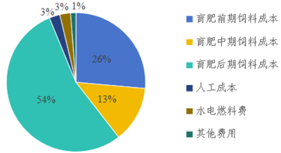 图2.1 粗饲均衡肉牛育肥模式 2.生产成本核算 以饲料全部外购计算,育肥前期日粮成本为11.8元/头/天,包括精饲料成本7.5元、粗饲料成本3.3元及预混料等其他饲料成本1.0元,阶段饲料成本2124元;育肥中期日粮成本增至17.5元,其中精饲料成本12.0元、粗饲料成本4.5元及预混料等其他饲料成本1.0元,阶段饲料成本1050元;育肥后期日粮成本达24.25元,包括精饲料成本18元、粗饲料成5.25元及预混料等其他饲料成本1.0元,阶段饲料投入4365元。育肥全程饲料成本合计7539元/头,叠加人工、水电燃料等固定成本共500元/头,单头牛总饲养成本8039元,育肥期公斤增重成本约14.62元¹。 图2.2 生产成本构成 三、模式特点与适用条件 粗饲均衡肉牛育肥模式的核心在于通过延长育肥时间来控制饲料成本日投入,整体表现为精料占比低、粗饲料利用率高。该模式资金集中投入压力相对较小,适合农牧交错带、传统农业区等土地与粗饲资源较丰富的主体参考应用。同时,由于育肥周期延长,各阶段需确保粗饲料品质与稳定供给,以避免影响牛只体况与增重节奏。 (注1:该牧场通过流转1000亩耕地,部分饲草料实现自给,头均育肥成本降低744元,总成本降至7295元,育肥期公斤增重成本约13.26元。详见全国畜牧总站发布“一年一作”地区种养结合肉牛养殖模式典型案例。) |