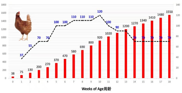 2、胫长:被忽视的“产蛋增量器” 胫长直接关联产蛋高峰时长与蛋壳质量,8周龄骨骼发育完成八成以上,12周龄接近定型,胫长与体重双达标是保障产蛋性能的基础。 胫长达标且均匀的鸡群,产蛋高峰更长、蛋壳破损率更低,这是因为骨骼能高效储存钙质供产蛋需求;而胫长不足的鸡群,易出现软壳蛋、停产等问题。 3、均匀度:鸡群高产的“同步秘钥” 均匀度是鸡群高产的核心群体指标:均匀度80%-85%的鸡群高峰维持约4个月,86%-90%可达6个月,超90%则超8个月,每只全期多产蛋15-20枚。 均匀度每降3%,每只鸡终产蛋量减4枚,强弱分化加剧、死淘率升5%-8%,核心是开产日龄紊乱,无法形成同步高峰。 三、科学培育:抓准关键期,筑牢高产根基 青年期培育核心是精准调控,围绕“控脂增肌、稳长强免、同步发育”目标,做好营养、环境、管理协同。 1、营养调控: 精准配比,拒绝“虚胖”与营养失衡 需按生长阶段动态调整营养配方:4-12周龄重点保证氨基酸均衡,促进肌肉与骨骼发育;13-18周龄适当降低能量供给,采用“限饲不限位”模式,避免腹腔脂肪过度堆积。 饲料更换需设置7天过渡期循序渐进,且需遵循核心原则:6周龄体重未达标时切勿盲目换料,需延续前期营养配方饲喂,直至体重达标。同时规避长期使用颗粒饲料的误区,防止鸡群挑食、引发应激反应,保障体重稳步增长。 2、环境与管理: 稳环境,提均匀度 日常需维持舍温稳定、昼夜温差适中,按生长阶段科学管控光照时长与强度,避免光照骤变引发性成熟紊乱、开产异常。 |